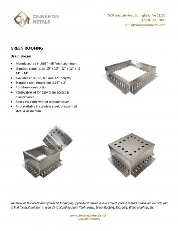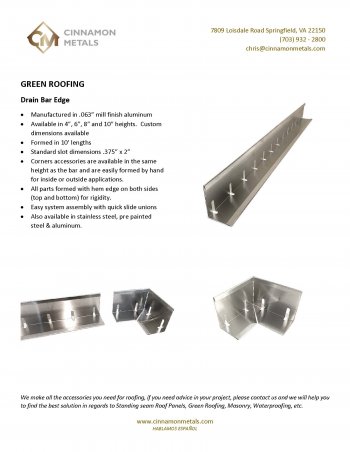Specialties: green roof edge restraint, green roof metal components, thru wall flashings, soldering, wall copings, edge metal, standing seam roof panels